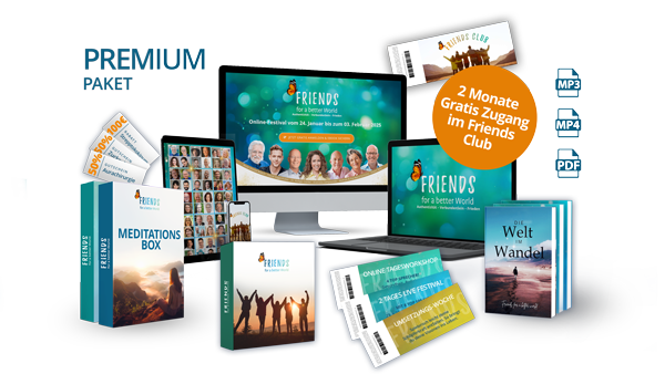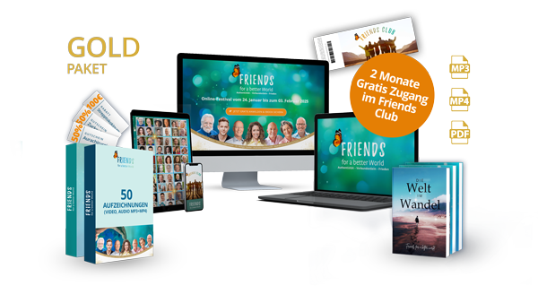 SEOMSoul Tribe - Der Tanz des Lebens: Wenn du tust was du liebst ![]() | Podiumsdiskussion Krisengeschüttelt - Live AufzeichnungAufzeichnung vom 9. Februar "Krisengeschüttelt: Von der Krisenflut zur inneren Ruhe - Wie wir Gelassenheit und Stärke finden" ![]() | Samuel Sieber - MeditationMorgen-Meditation: Die Harmonie in uns, der Erde und den Kosmos spüren ![]() | Yann Sura - MeditationenMorgen-Meditationen: In Verbindung mit dem Wesentlichen & Verkörperung deiner Lichtkraft ![]() | Monika Gschwind - MeditationenMorgen-Meditationen: Komm in Einklang mit deinem Körper & Herzöffnung ![]() | Diplom-Psychologe Robert Betz - Live AufzeichnungAufzeichnung vom 1. Februar "Wie entsteht FRIEDEN in dir und in der Welt?" ![]() | Pascal Voggenhuber - Live AufzeichnungAufzeichnung vom 29. Januar "Aktiviere deine Selbstheilungskraft" ![]() | Austausch mit den Darstellern des Films Soultribe - Live AufzeichnungAufzeichnung vom 28. Januar "Ein lebendiger Austauschabend mit den Darstellern" ![]() | Eva-Maria Zurhorst & Wolfram Zurhorst - Live AufzeichnungAufzeichnung vom 27. Januar "So geht Beziehung!" ![]() | Abschluss und Rückblick des FRIENDS-Festivals 2025 - Live AufzeichnungAufzeichnung vom 4. Februar "Abschluss und Rückblick des FRIENDS-Festivals 2025" ![]() | Gabi Schörk, Thomas Frei & Monika Gschwind - Live AufzeichnungAufzeichnung vom 30. Januar "THE BIG FIVE for a good LIVE" ![]() | Unsere Moderatoren stellen sich vor - Live AufzeichnungAufzeichnung vom 23. Januar "Unsere Moderatoren stellen sich vor." ![]() | Global Peace Meditation - Live AufzeichnungAufzeichnung vom 2. Februar "Gemeinsam für eine bessere Welt" ![]() | Dr. Jayesh Shah - Live AufzeichnungAufzeichnung vom 25. Januar "Sich in das Feld der Möglichkeiten ausdehnen" ![]() | Soultribe Der FilmKinofilm: Soultribe - Ein Tanz des Lebens ![]() | Neale Donald Walsch🇺🇸🇩🇪 Freundschaft mit Gott ![]() | Diplom-Psychologe Robert BetzEndlich glücklich leben! ![]() | John Strelecky🇺🇸🇩🇪 Neue Träume und musikalische Abenteuer: Johns Reise zur Erfüllung ![]() | Dr. Ruediger DahlkeEin Appell an uns Menschen. Unser jetziges Schicksal als Chance ![]() | Eva-Maria & Wolfram ZurhorstSo geht Beziehung - oft ganz anders als du denkst ![]() | Anastasia ZampounidisNatürlich und entspannt durch die Wechseljahre ![]() | André SternEine neue Perspektive auf Gender ![]() | Pascal VoggenhuberEngel als unsere Führer, Beschützer und Heiler ![]() | Dr. Stefan FrädrichDie Revolution in den Therapien! Psychedelische Substanzen sind die Zukunft ![]() | Michael AllgeierWas 2025 auf uns zukommen wird ![]() | Thomas Schmelzer - Live AufzeichnungAufzeichnung vom 26. Januar "Das Miteinander & die Potentiale der Nächstenliebe" ![]() |