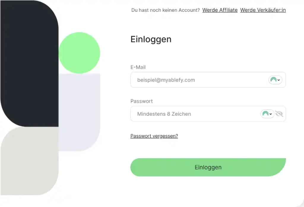 Logge Dich im Anschluss mit Deinen Ablefy-Anmeldedaten ein.