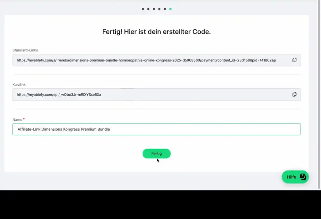 Gehe im Ablefy-Konto "Affiliate-Links". Klicke auf den Button "Erstellen". Wähle eine Linkart aus. Führe nun folgende Auswahl durch: Affiliateprogramm:17168 Friends Online Festival 2026 -> Produkt: Friends Kongresspaket 2026 "Der echte Mensch"> Bezahlseite -> Content-ID: 241219 Friends Online Festival 2026.